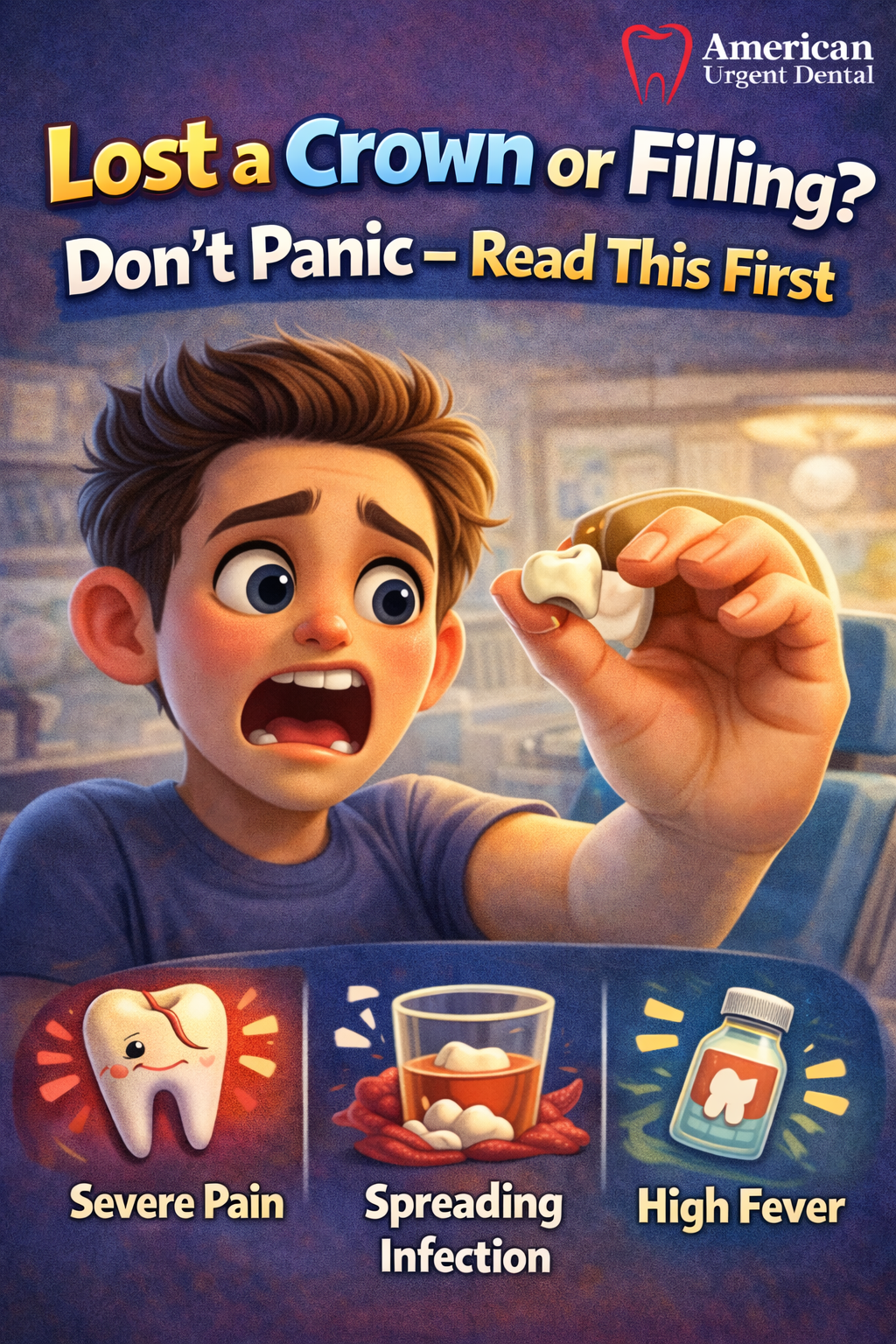 It happens at the most inconvenient times. You're eating dinner and you feel something hard in your mouth — your crown has come off. Or you're brushing your teeth and notice that an old filling is missing. While the experience can be alarming, the good news is that losing a crown or filling is a manageable situation — as long as you handle it correctly and seek care promptly. This guide covers exactly what to do the moment you lose a crown or filling, how to protect the tooth until you're seen, and why calling American Urgent Dental should be your next step.